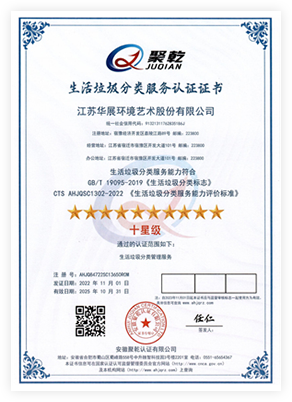 生活垃圾分類服務(wù)認(rèn)證證書(十星級(jí))
