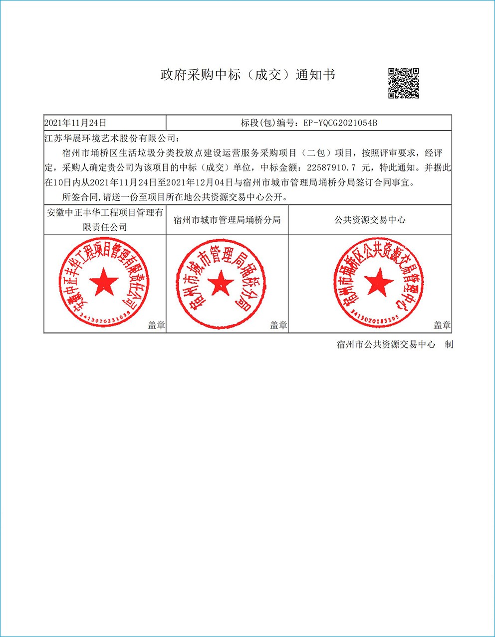 【中標通知】安徽省宿州市埇橋區(qū)生活垃圾分類投放點建設運營服務采購項目