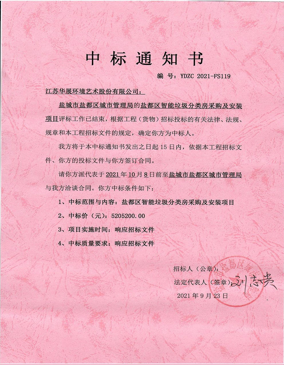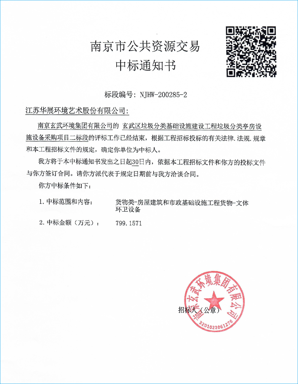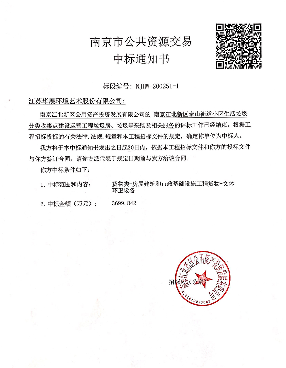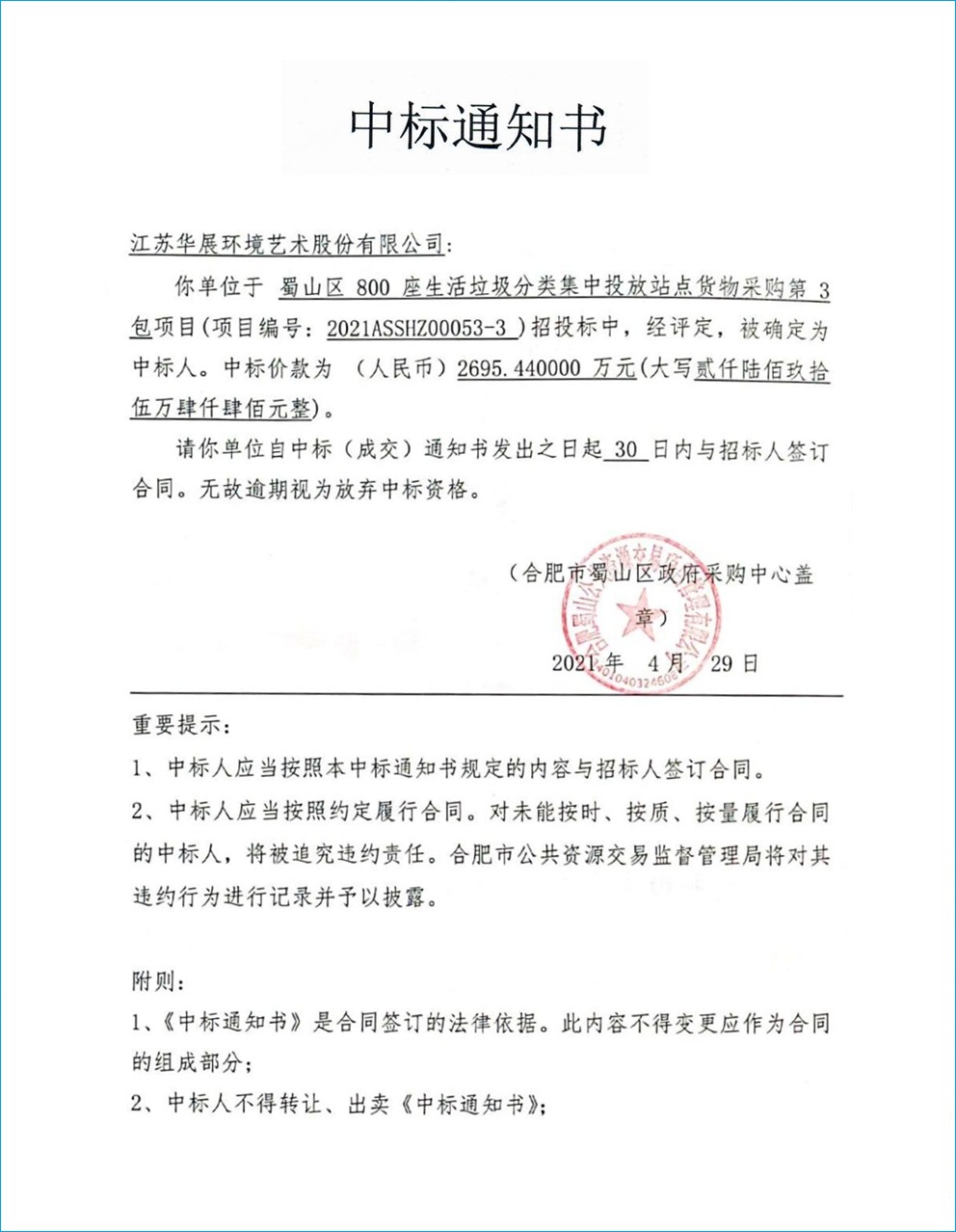 【中標(biāo)通知】江蘇省南京江北新區(qū)泰山街道小區(qū)生活垃圾分類收集點(diǎn)建設(shè)運(yùn)營工程垃圾房、垃圾亭采購及相關(guān)服務(wù)項(xiàng)目