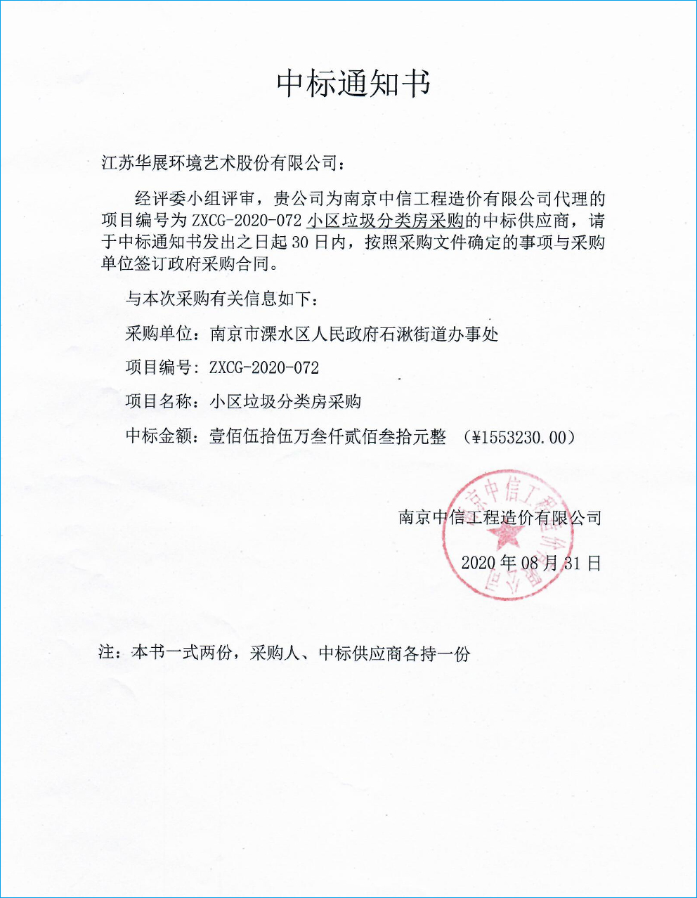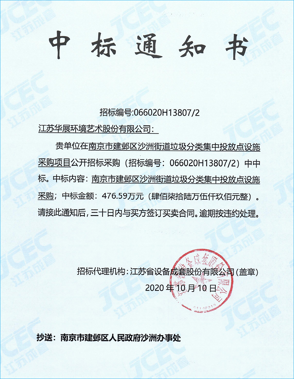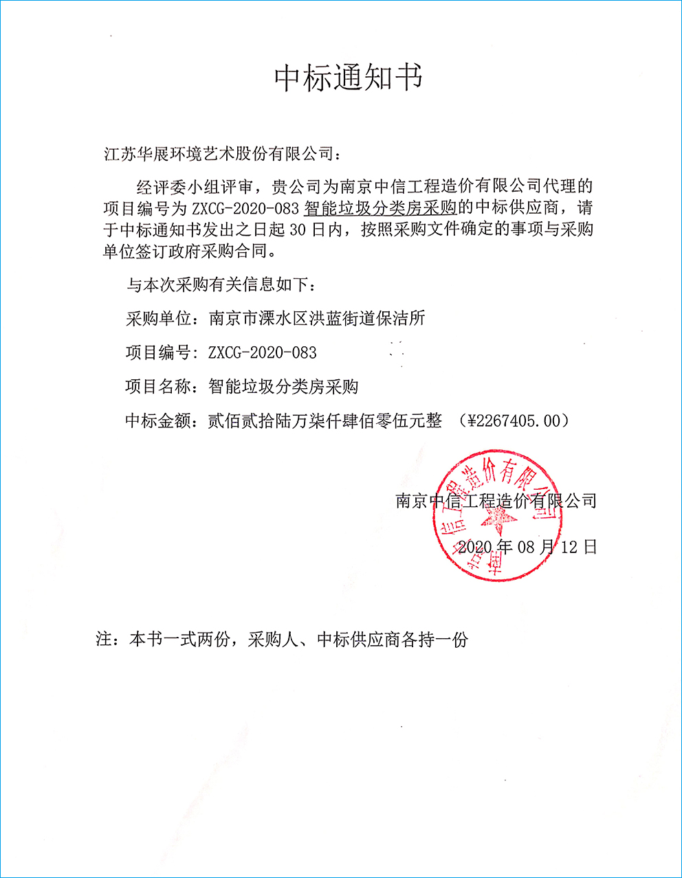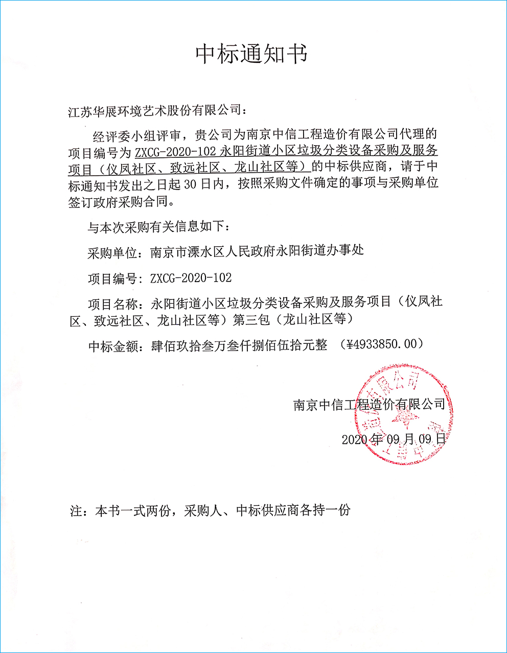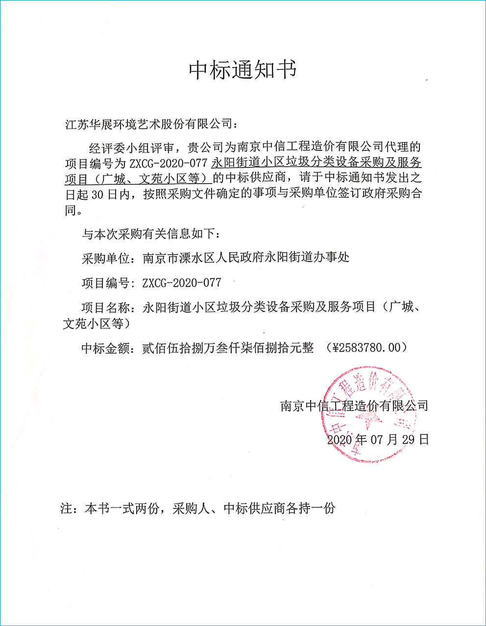 【中標通知】江蘇省南京溧水永陽街道小區垃圾分類設備采購及服務項目